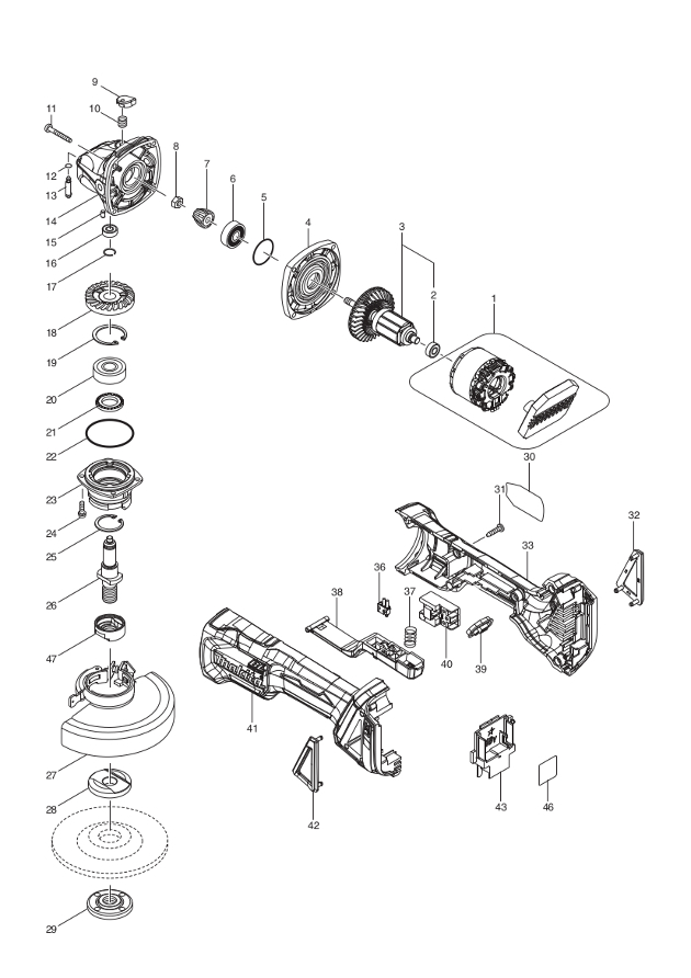 Makita DGA458 Cordless Angle Grinder Spare Parts – Yedek Parçaları